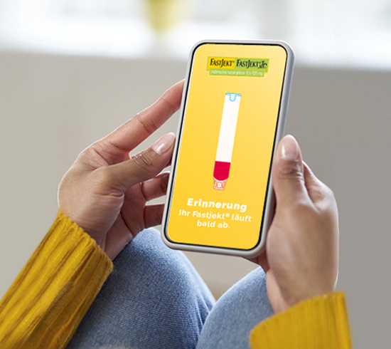 Über die obige Anmeldemaske können Sie sich in nur wenigen Schritten für „Mein Erinnerungsservice“ registrieren. Wichtig ist die korrekte Angabe des Ablaufdatum Ihres Fastjekt®. Dieses ist auf dem Autoinjektor abgedruckt. Beachten Sie bitte: Sollten Sie, wie empfohlen, zwei Fastjekt® Autoinjektoren mit demselben Ablaufdatum haben, so müssen Sie sich nur einmal anmelden. Unterscheiden sich die Ablaufdaten, registrieren Sie bitte jeden Fastjekt® einzeln.